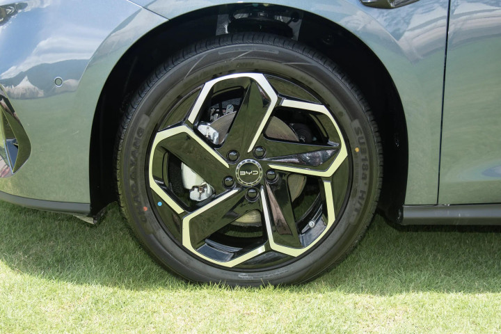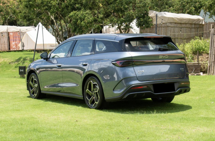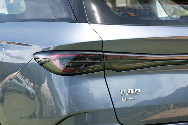 车尾有着更加厚重的造型,尾灯组继续采用贯穿式风格,上方为可发光“BYD”字母车标和尖锐凸起的尾箱线条,后风挡的面积不大,配备大尺寸后扰流板和机械式后雨刷,牌照架位于黑色后包围中央,下方带有扩散器饰板,增添了几分运动感。