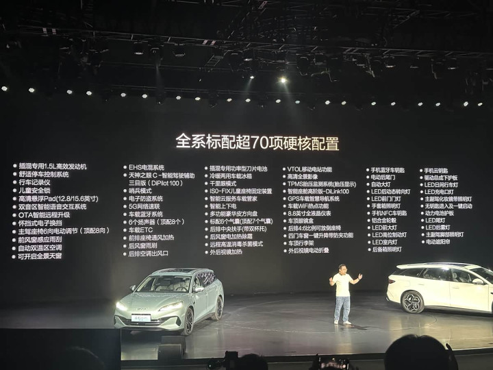 动力方面,海豹06DM-i旅行版继续搭载由1.5L发动机+电动机组成的插混系统,发动机最大功率74kW,电动机有最大功率120kW和160kW两种规格,匹配容量为10.08kWh和18.71kWh的磷酸铁锂电池,CLTC工况下对应的纯电续航里程分别为80km和150km。另外,该车全系配备天神之眼C辅助驾驶系统,高配车型搭载云辇-C系统。